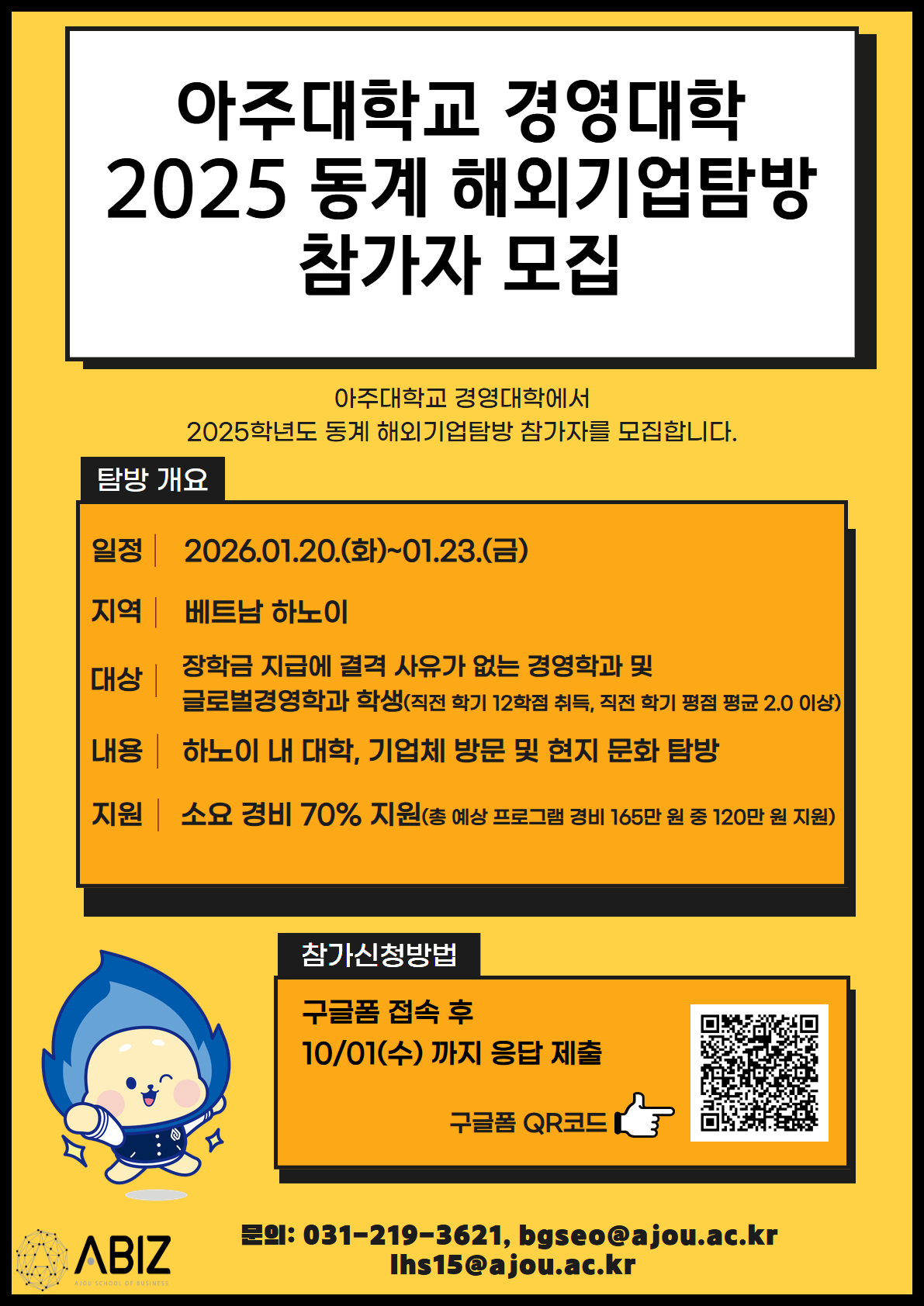 경영대학 교학팀 (031-219-3621, bgseo@ajou.ac.kr)