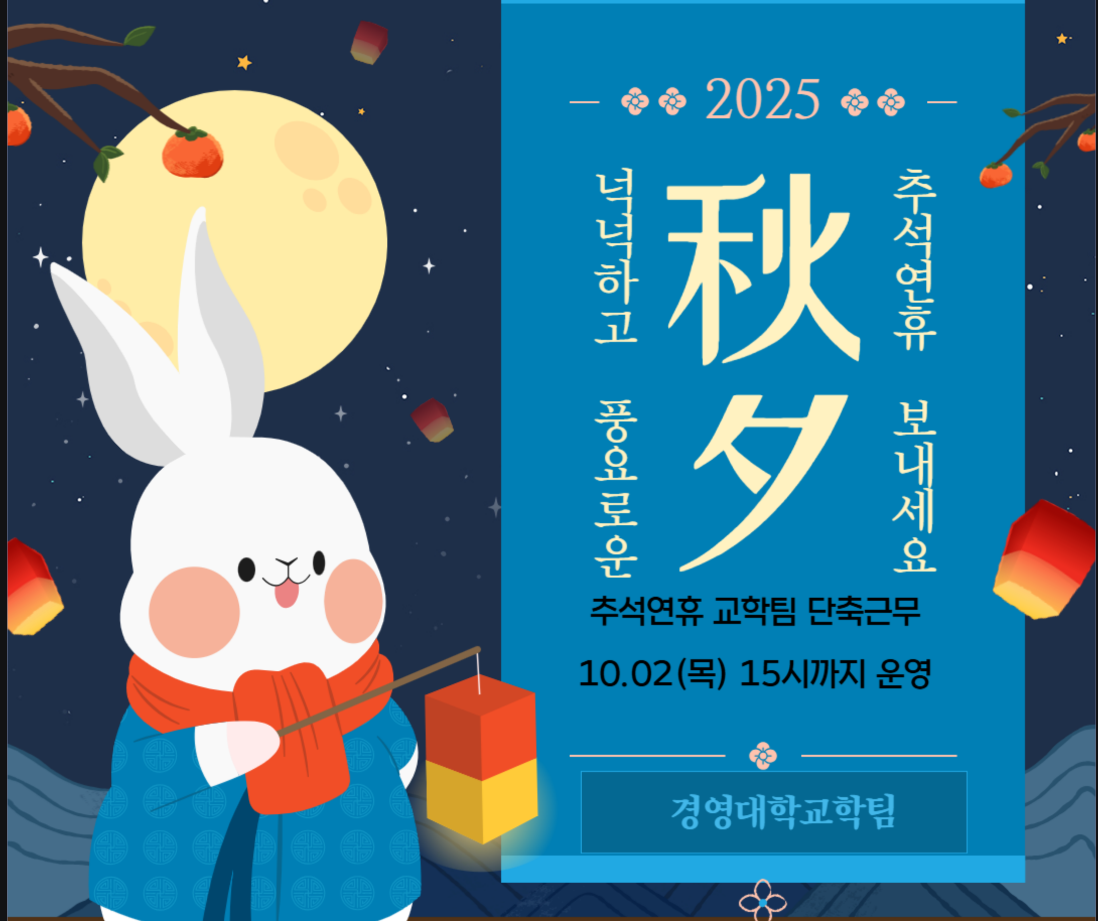경영대학교학팀에서는 아래와 같이 추석 연휴 아래와 같이 사무실을 운영합니다.