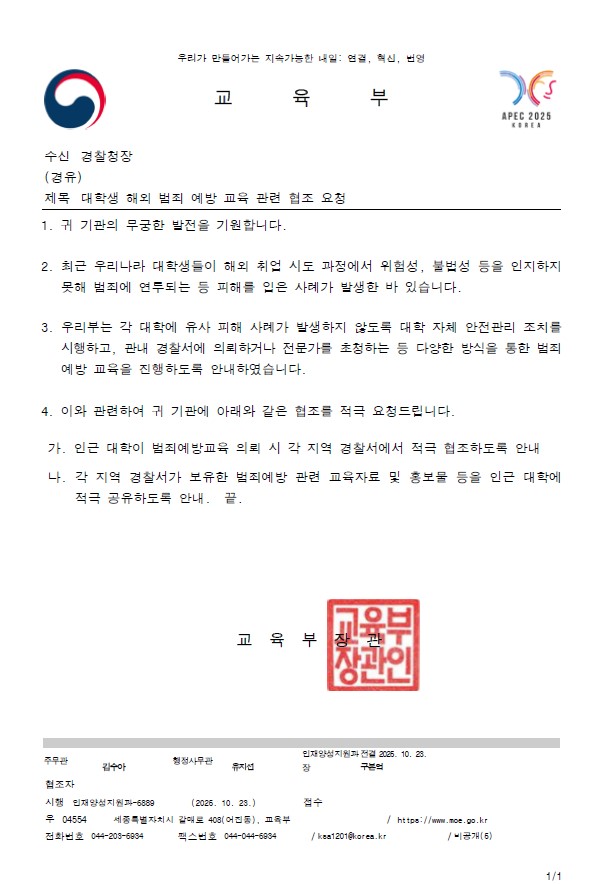 [기타] [교육부] 대학생 해외 취업 피해 예방을 위한 안내